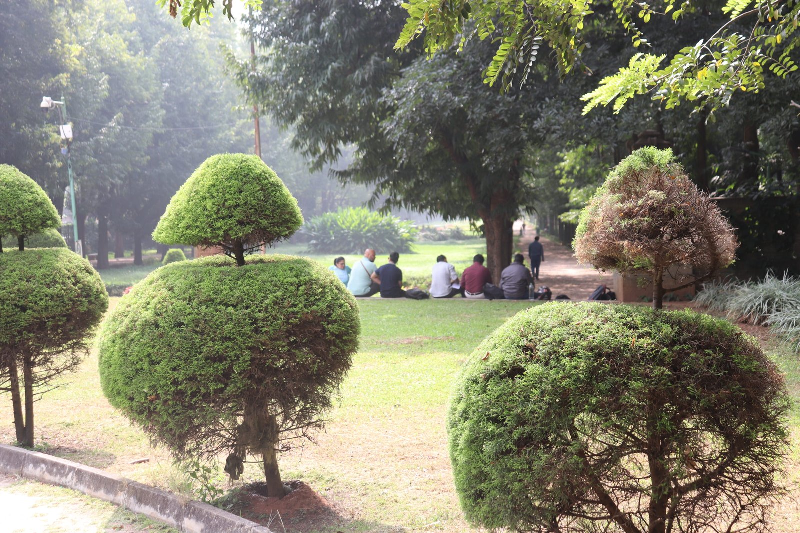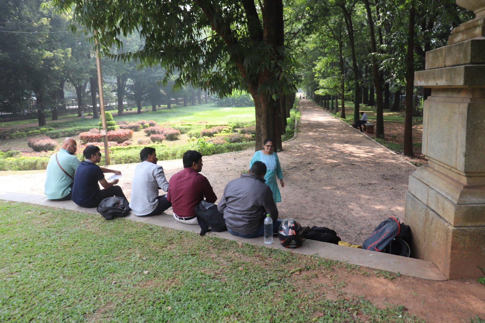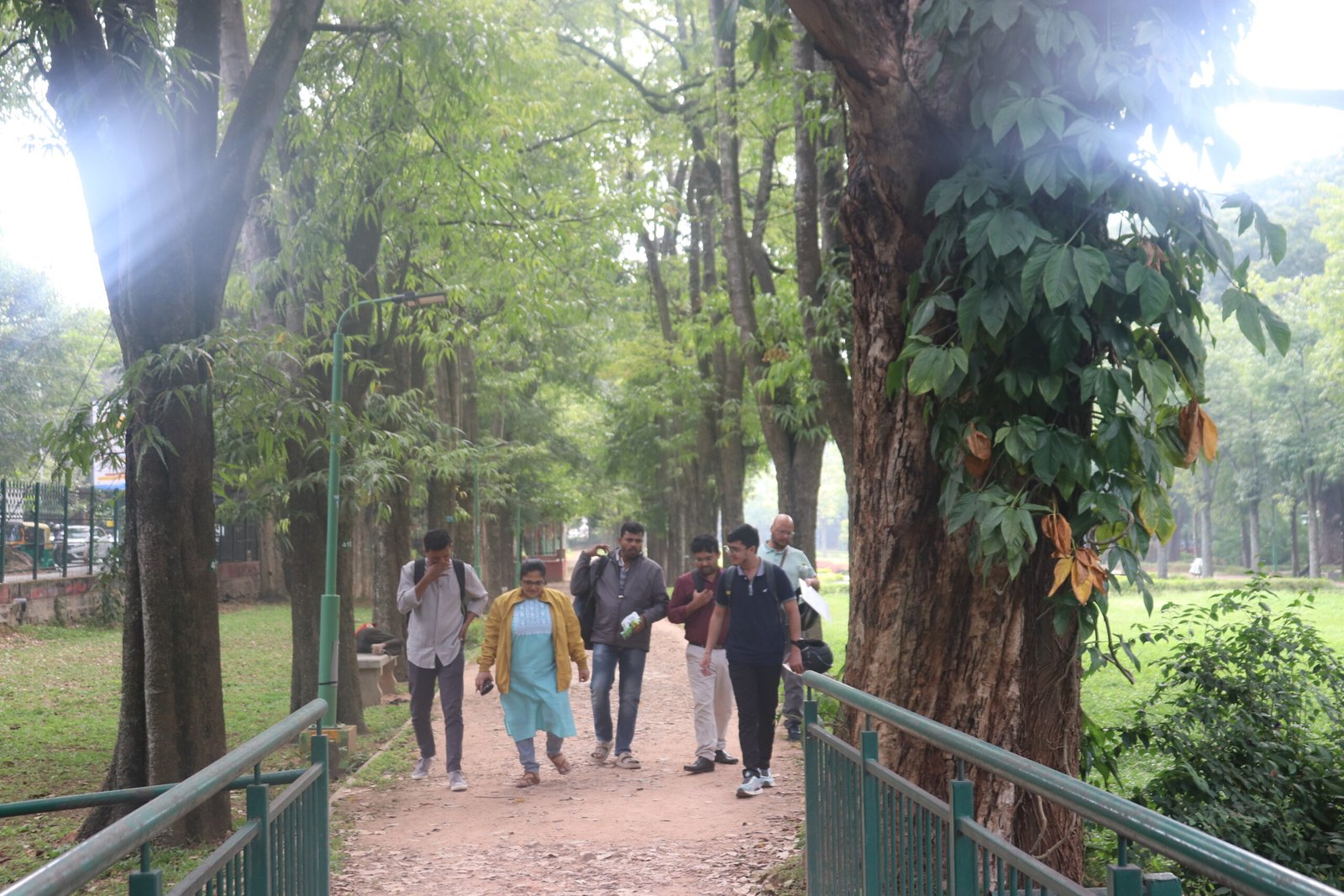 Outdoor learning in a park brings students closer to nature, enhancing focus, creativity, and real-world observation skills.