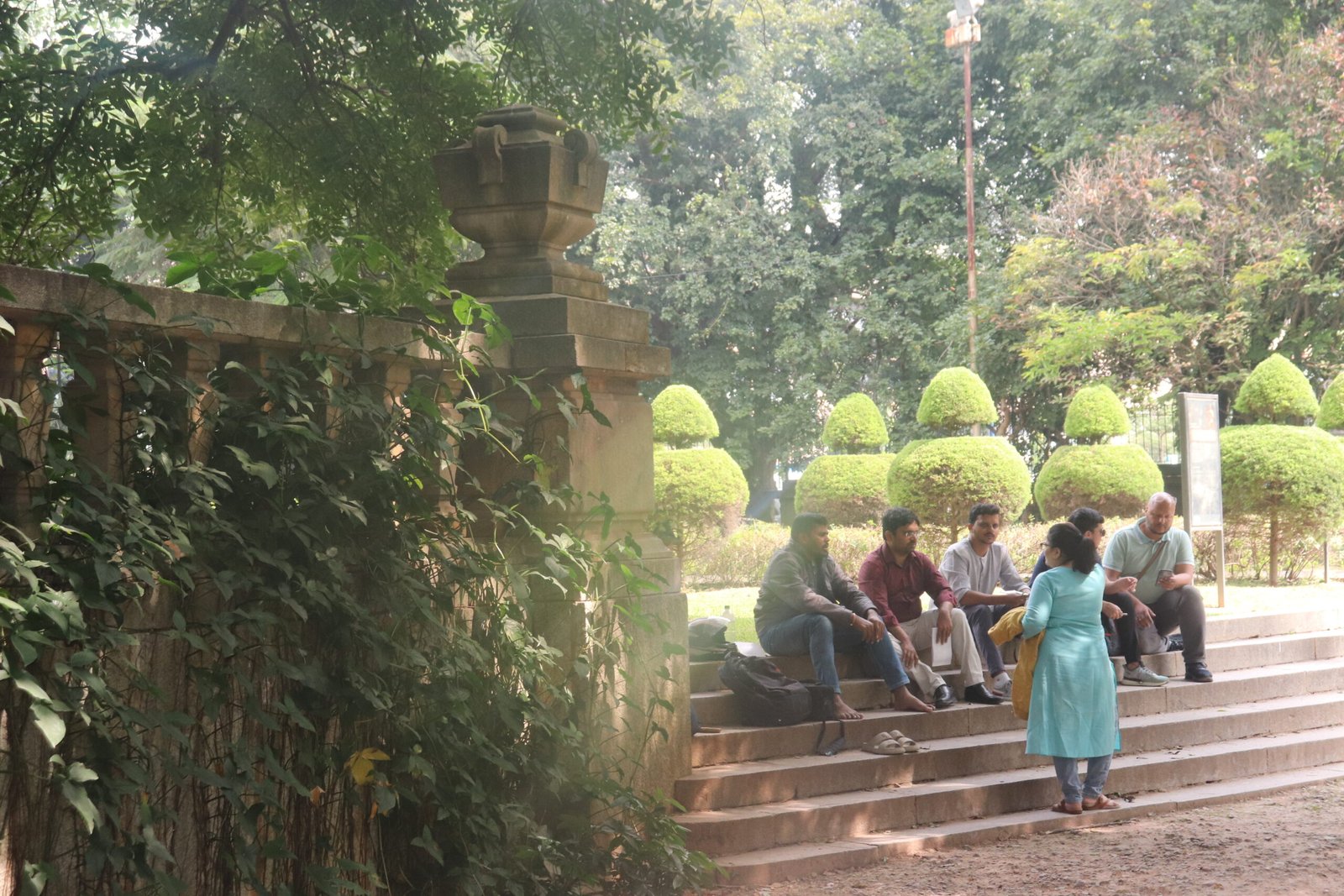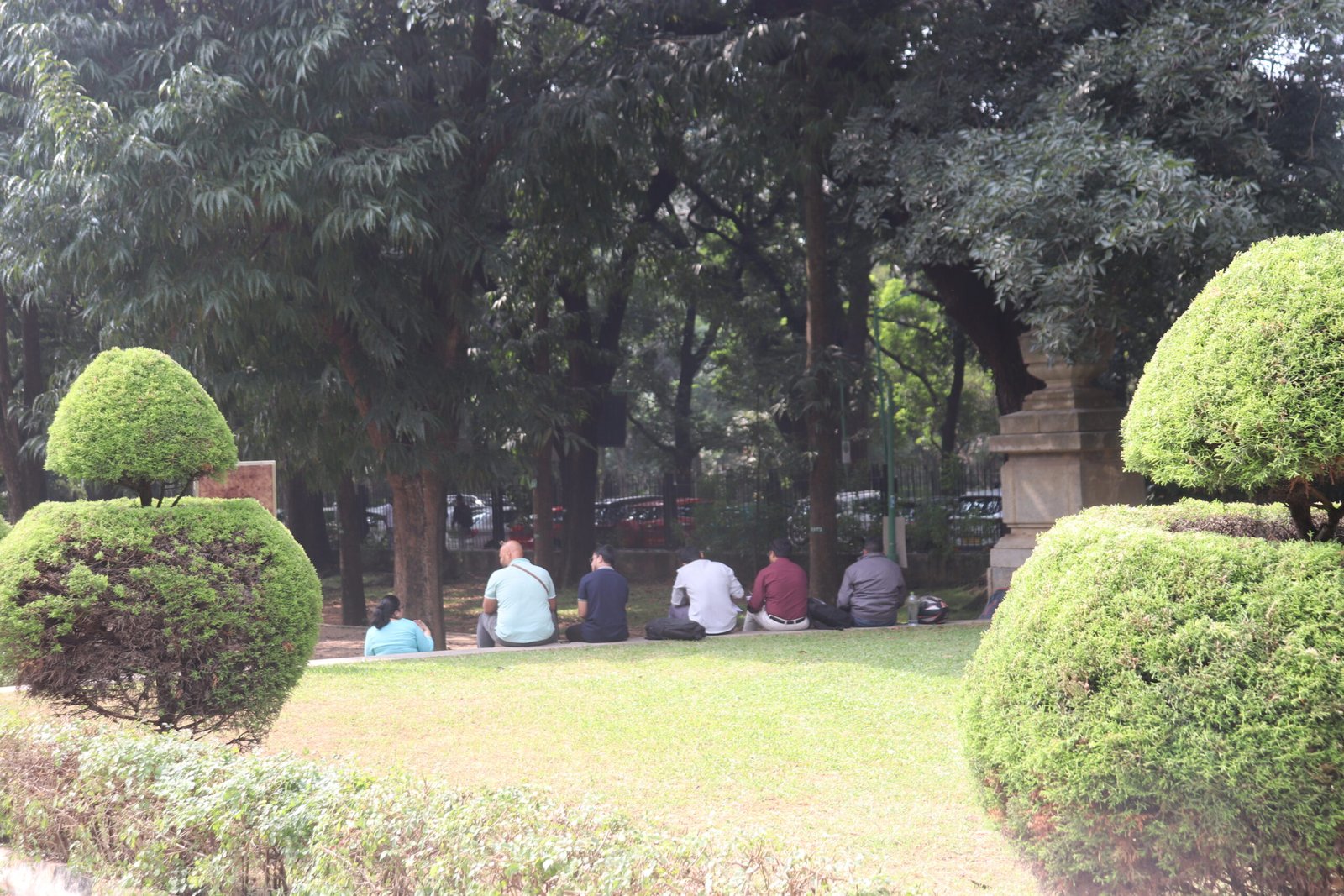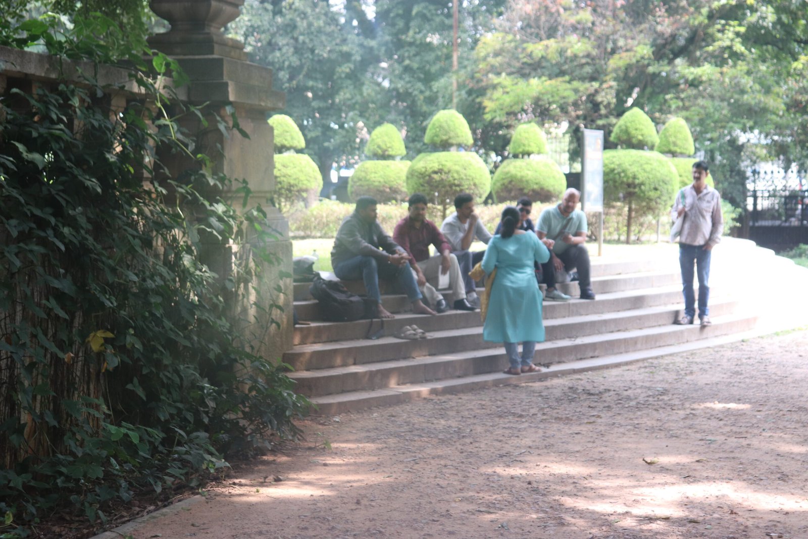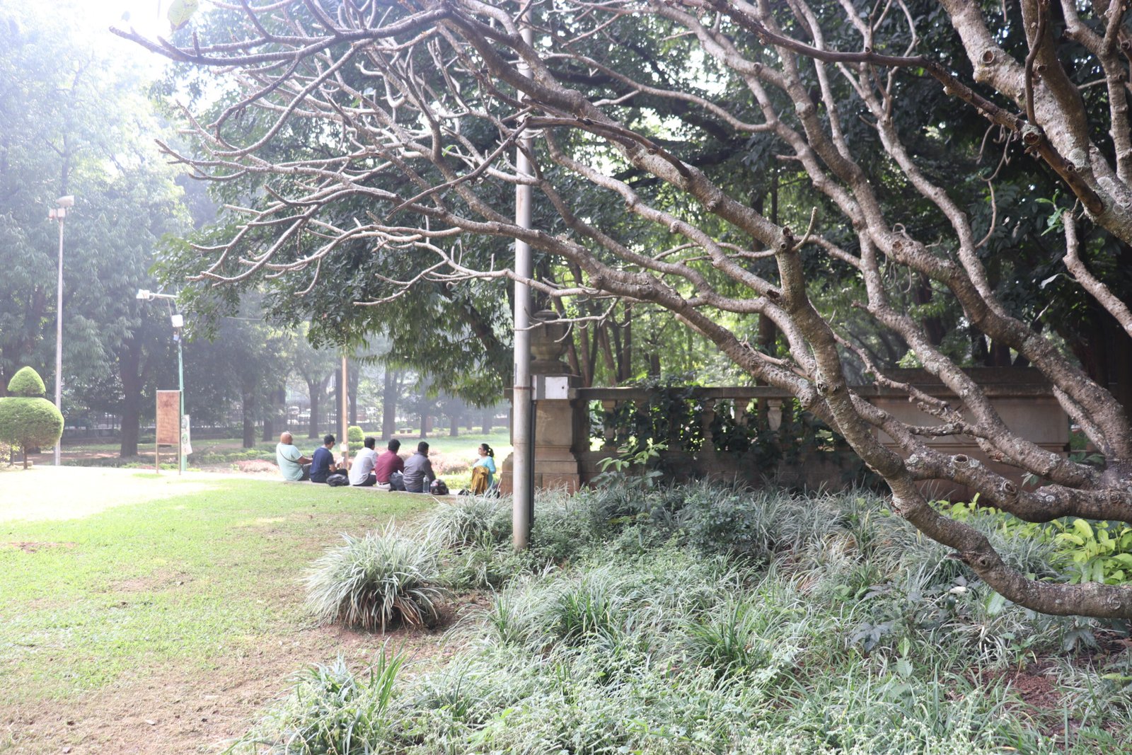 Outdoor learning in a park brings students closer to nature, enhancing focus, creativity, and real-world observation skills.